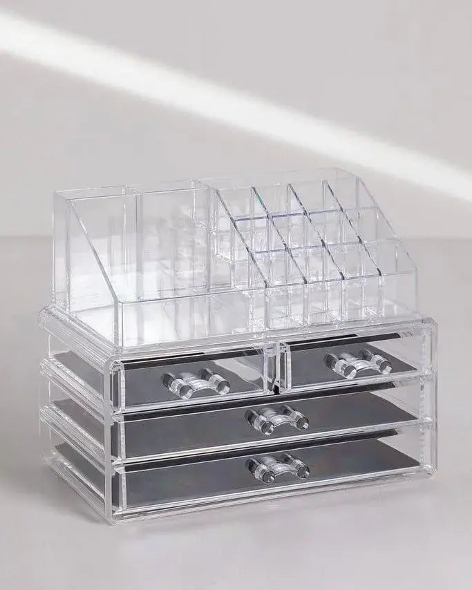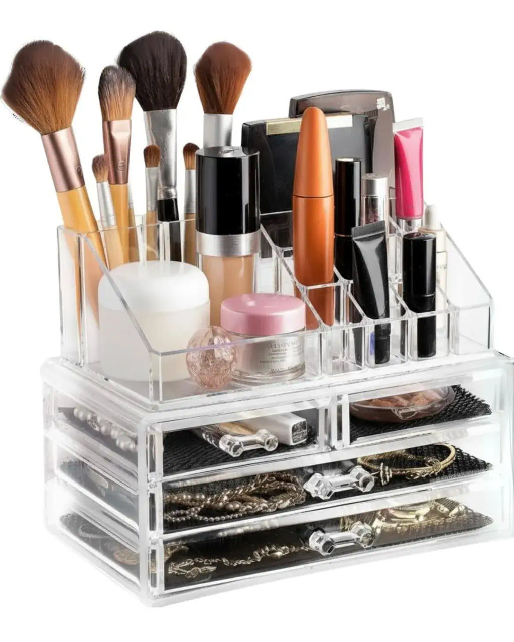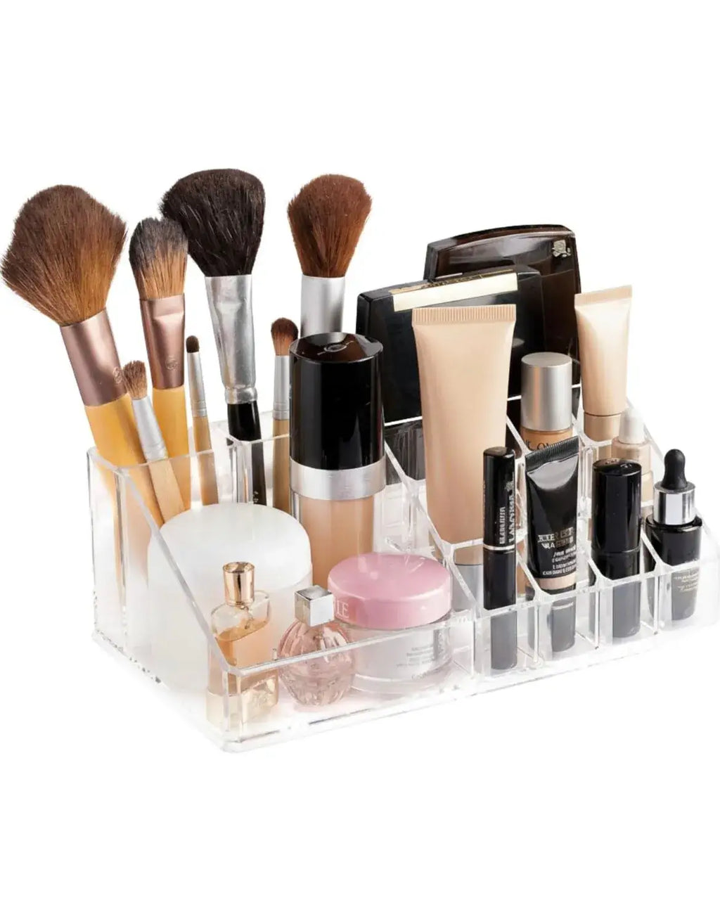 Chega de perder tempo e maquiagem espalhada! Adquira agora seu Organizador de Maquiagem Acrílico Transparente e eleve a organização da sua beleza a um novo nível!