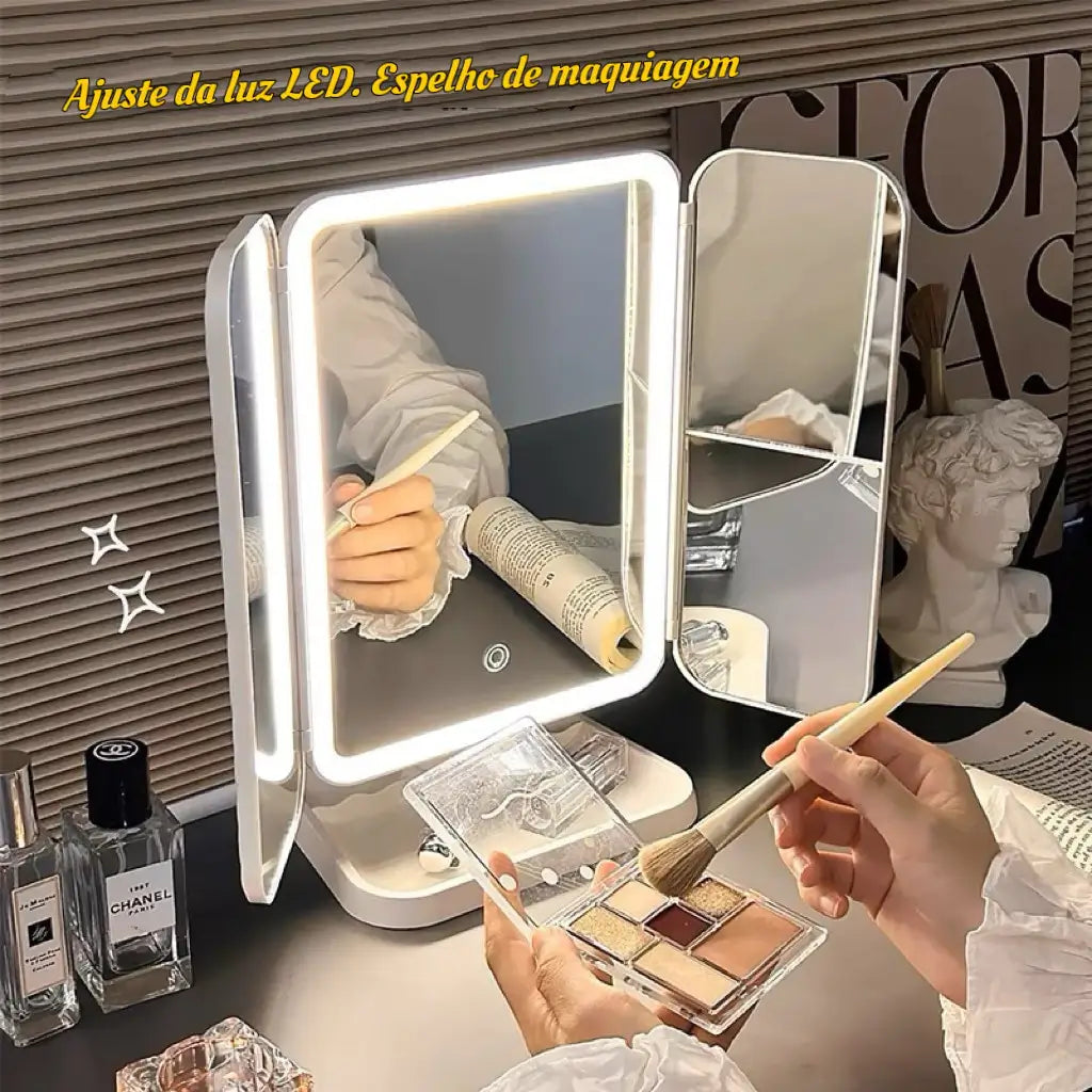 Espelho Portátil LED Dobrável - Garanta já o seu!